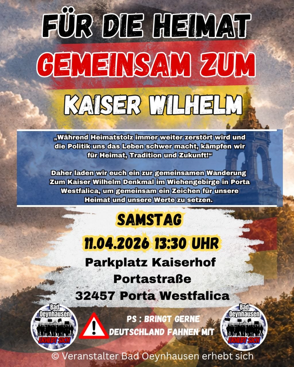 Sa 11.4.26 13:30 Wilhelmsdenkmal, Parkplatz Kaiserhof